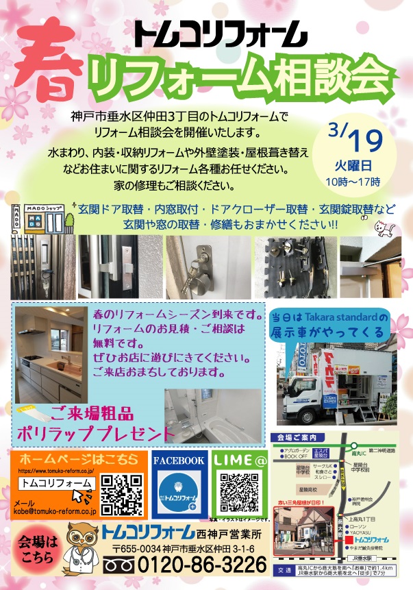3月リフォーム相談会を開催します【垂水の西神戸営業所 3月19日火曜日】(終了しました)