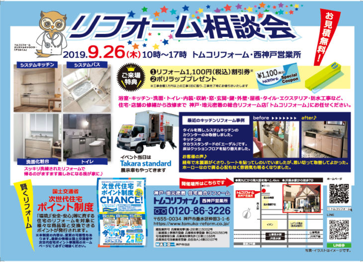9月リフォーム相談会を開催します【垂水の西神戸営業所 9月26日木曜日】(終了しました)