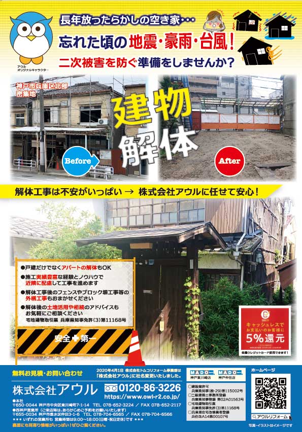 無料見積はこちら 住宅診断はこちら LINEで無料見積り・相談 HOMEイベント情報忘れた頃の地震・豪雨・台風。建物を解体して二次被害を防ぐ準備をしませんか? 忘れた頃の地震・豪雨・台風。建物を解体して二次被害を防ぐ準備をしませんか?(終了しました)
