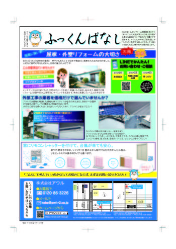 無料見積はこちら 住宅診断はこちら LINEで無料見積り・相談 HOMEスタッフブログその他令和4年秋号ふっくんばなし・安心ニュース 令和4年秋号ふっくんばなし・安心ニュース アウルについて 会社案内代表挨拶会社概要アクセスマップ アウルが選ばれる理由 部門紹介 施工事例 施工事例一覧 階段 外壁、屋根 建物解体 玄関ドア、窓 リノベーション 水まわりリフォーム 間取り変更、内装 ビル・施設改修 トラブル解消 お客様の声 お客様の声一覧 お役立ち情報 価格表 受注状況 メンテナンス工事から大型リフォームもお任せください 不動産の売買、リノベーションをお考えの方へ 空き家・建物の解体工事にお悩みの方へ 火災保険を適用した屋根・外壁修理 イベント・チラシ スタッフブログ 相談会・勉強会 家の売却をお考えの方へ 住宅診断 プライバシーポリシー よくある質問 リフォームの流れ お問い合わせ お問い合わせ 無料お見積もり LINE相談・見積もり