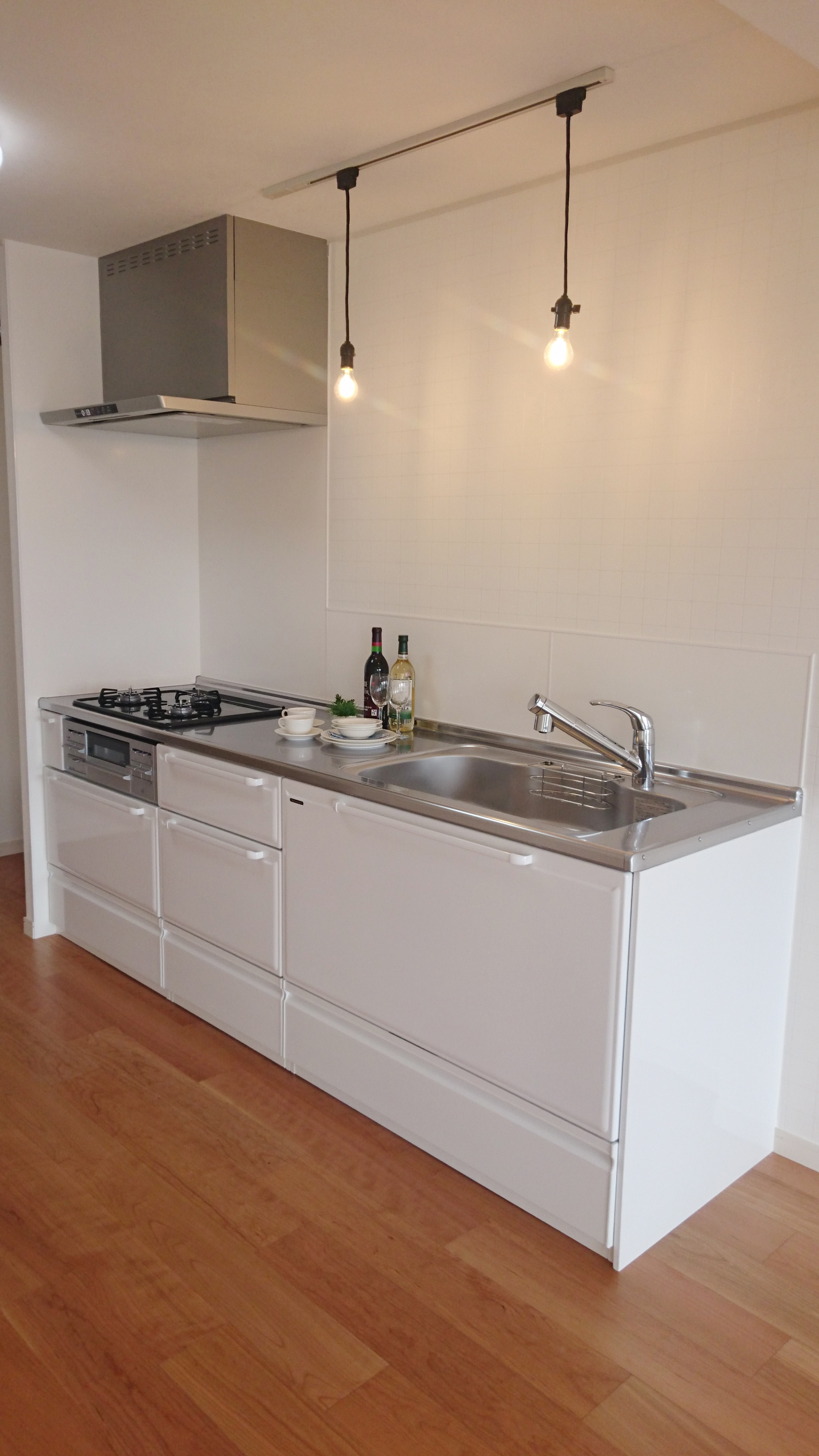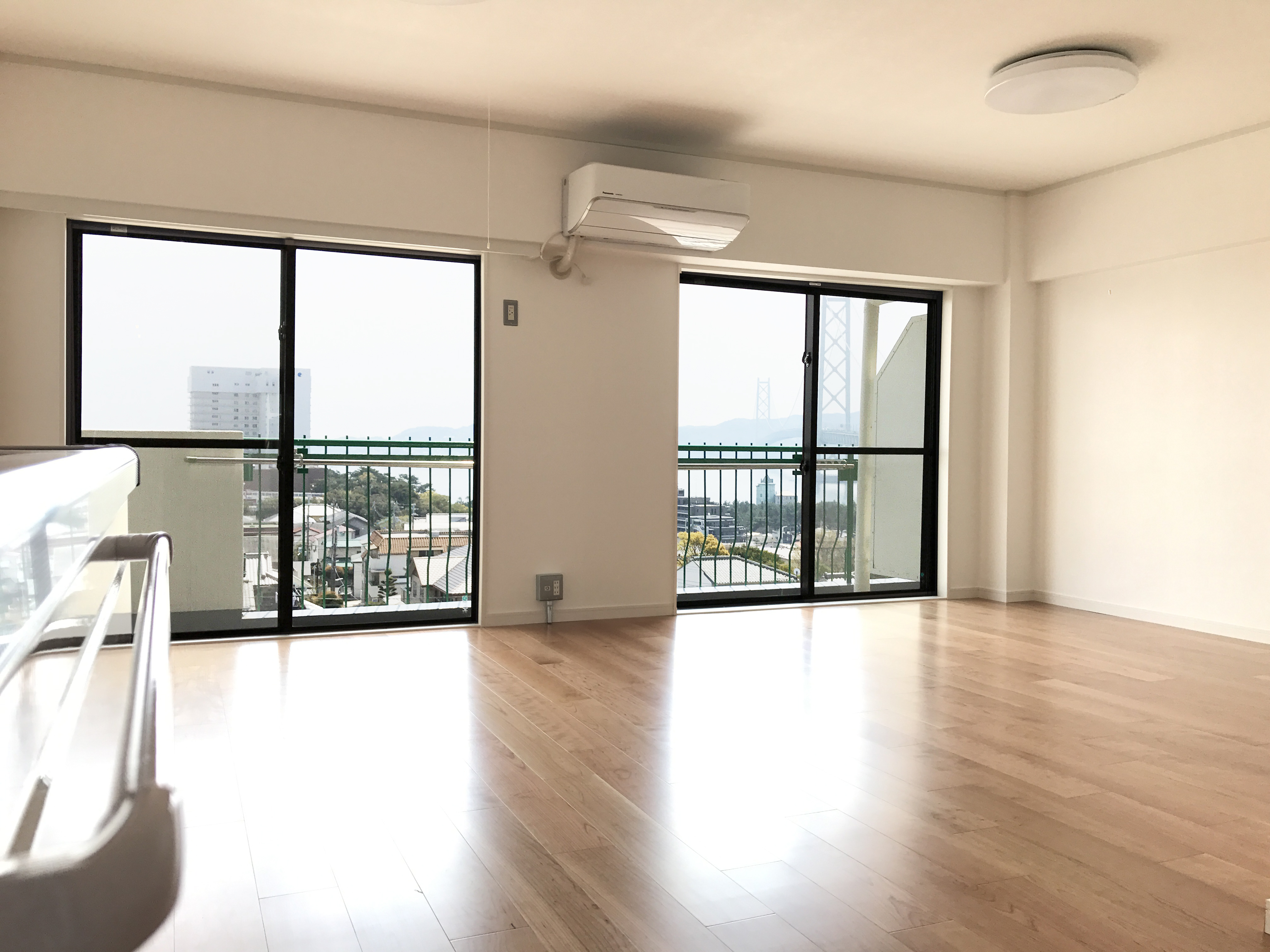 | ご提案内容 | 窓から見える淡路島と明石海峡大橋の眺望が印象に残る空間になりました。洗面脱衣室は、病院などで使用されている実験用の洗面台を取付しました。スッキリとした洗面下はお掃除するときに楽ですし、陶器製の広いシンクは小型のペットならシャンプー等もできますね。シンプルな角型のフォルムなので空間にも馴染みやすく、ひそかにブームのようです。 キッチンは、吊戸はつけずに、お施主からの御支給でLEDのペンダント照明を取付しました。白熱電球のようなフィラメントの輝きを再現したLEDランプで、周囲に柔らかい光を放っています。 |
