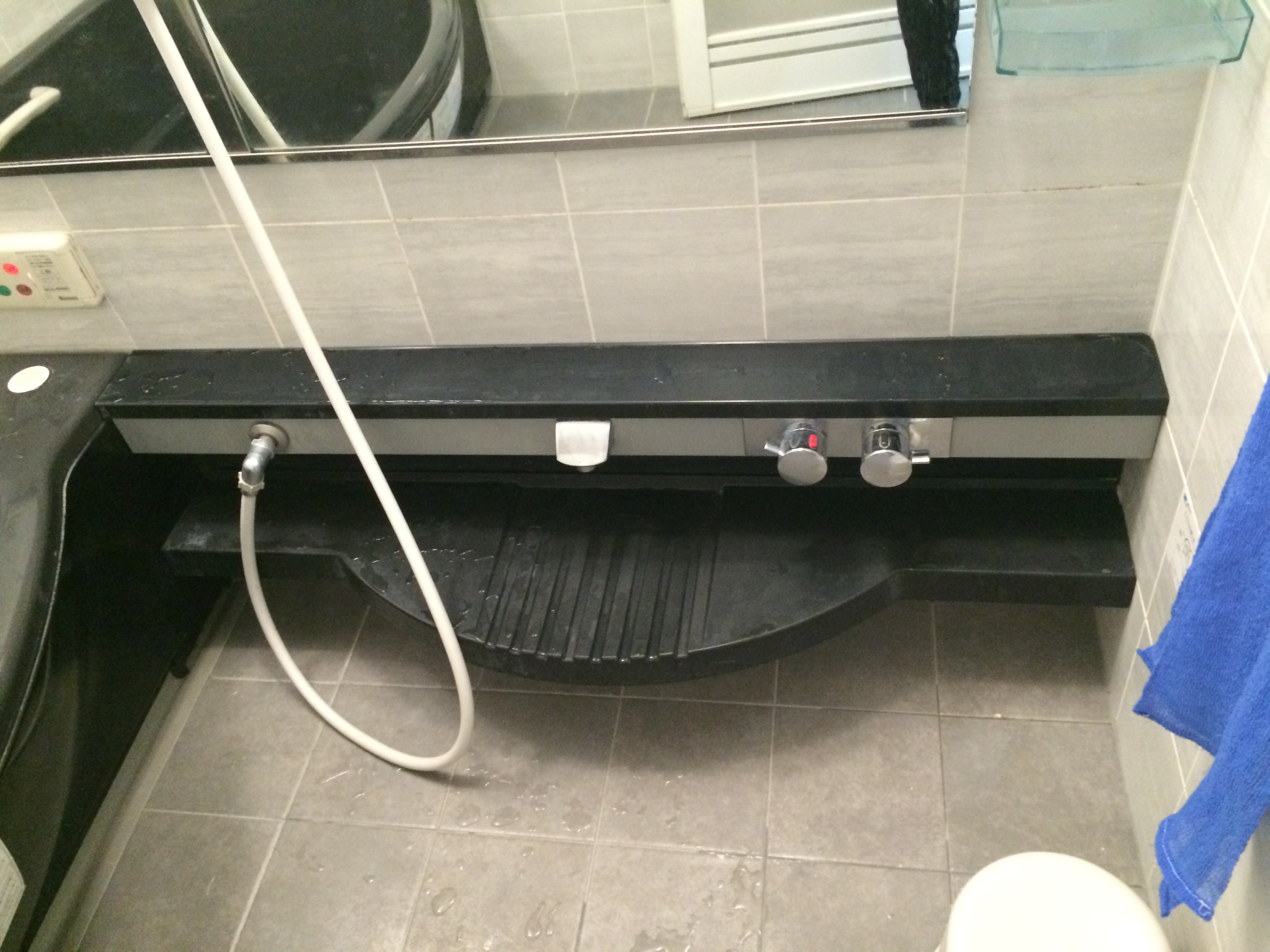 | ご提案内容 | 元々高級感のある黒色の人造大理石浴槽です。システムバスの性質としては基本的に部分的な取替は不可といわれますが、そこを何とかできないかと試行錯誤。お客様との打合期間はなんと3年。ご要望通り、明るくてさわやかな印象の浴槽・カウンター・水栓のパーツ部分のみ交換をする事ができました。 |