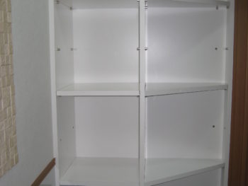 | ご提案内容 | トイレ前のデッドスペースに収納棚を作り、間仕切り壁を取り払い同じ空間にする事で広くて使いやすいトイレになりました。 |