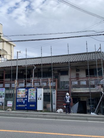 | ご提案内容 | バス通りに面したアパートの建物解体工事です。 人通りも多く、バスが頻繁に通る道沿いでの解体工事です。 近隣に配慮し、工事を進めていきます。 |