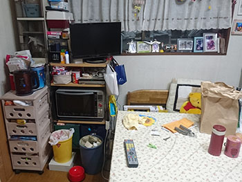 | お客様のご要望 | 物が溢れかえってしまっているので、収まりが良く、使い勝手のいい収納棚を取り付けていただきたいです。 |