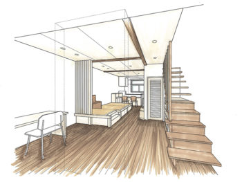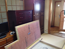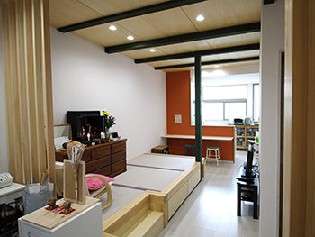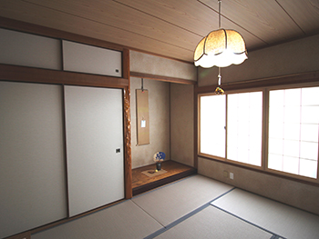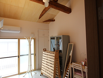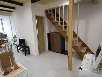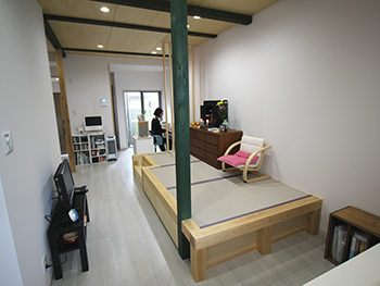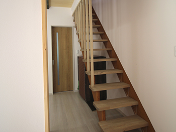 | ご提案内容 | 風通しの良く、快通で機能的な空間を望んでおられた施主様姉妹は、リノベーションの見積りの前に当社の人気メニューである「建物診断」を希望されました。それは、築20年以上経過した4軒長屋の一角を改修するのにまさに正しい選択でした。 建物の各部位は、担当の設計士により分析・評価され問題点が整理されたうえで、プランニングが進められました。1階は,細かく仕切られ風通しの悪かった空間を1LDK+ワークスペースの一室空間にまとめられました。 2階は、寝室(1)と廊下の天井を取り払い、開放感を演出しつつも丸太梁や小屋組を見せることで、木の暖かみの感じられる、親密でプライベートな空間に仕上げられいます。 すべての部屋の壁紙は、木片チップ入りの紙製の壁紙が使用されています。 この壁紙は調湿性が高く、厳しい環境性能が求められるドイツ製でホルムアルデヒトなどの有害物質をほとんど含まない素材です。 |