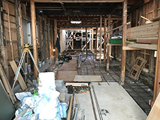 | ご提案内容 | 築100年近くになる町家の改修です。オーナーご夫婦は、これまでこの家に住まわれてきたお母様と同居することになりました。とはいえ建物の老朽化は進み、今後数十年この家で暮らすことを考えると新しい設備や間取りが必要であり、全面的なリフォームを決断されました。 現地調査の結果、床下に断熱材はなく、ガラスが1枚はまっただけのサッシは熱の損失が大きく、いくらエアコンを使っても空調効果が得られない状態でした。構造体も当時のままで補強が必要であり、お風呂や洗面所も現代生活の要求に応えられる仕様とは言いがたいものでした。 建物形状は、間口は一般的な幅ですが、奥行きは約25メートルもあります。これだけの長さがあり、両側にお隣の家がぎりぎりまで迫っていると建物の真ん中あたりは日当たりが悪くなります。 そこで、試行錯誤の末、昔からこのような奥行の長い空間を持つことが多い町家に倣って中庭を設けることになりました。そして、この中庭により建物の奥まで光がいきわたり、また風通りの良い空間となりました。 元々の建物の形状が複雑であったことや、給排水管も含めた全面改修であったことから難易度の高い工事となりましたが、入念な調査を行っていたため無駄な作業を発生させることなく無事に工事を終えることができました。 |