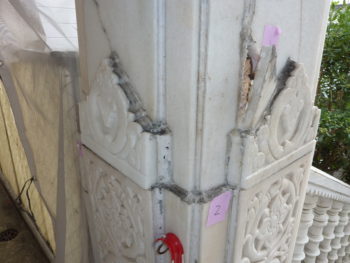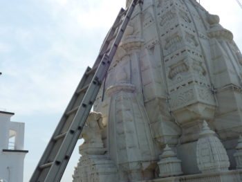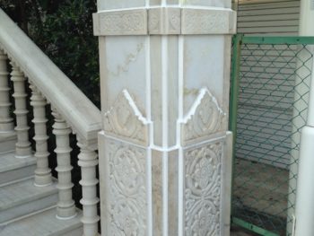 | ご提案内容 | 戒律の厳しさで知られるインドのジャイナ教寺院です。 本国と同じ設計思想で建築された寺院は鉄やプラスチック等の人工物を使用しておらず、内壁・外壁共に使用されている大理石はすべてインドで彫刻され日本に運ばれてきました。 私たちの主な役割はこの大理石をもとの真っ白な美しい状態に戻すということでした。しかし、長年風雨にさらされ、大理石内部に含まれる鉄分に発生した錆を取り除く作業は困難を極め、さらなる錆を発生させない薬品の選定も重要でした。白大理石は、職人たちの長期にわたる懸命な作業のおかげで非常に美しい表情を取り戻し、今後このような損傷が発生しにくいよう特殊なガラスコーティングが全面に施されました。 神様を祀る祭壇内部にも漏水が発生していたため、礼拝堂上部のドームには最先端の熱分布により漏水箇所を調べるサーモグラフィ、特殊な着色水を使用した漏水経路特定のための調査方法などを導入し、幾度にもわたる調査ののち、ついに原因を特定し、現在は無事に神様をお守りすることができています。 また、もっとも重要な儀式である礼拝のためのカウンターを制作させていただきました。もちろん大理石と木材による自然素材のみを使用しています。 |