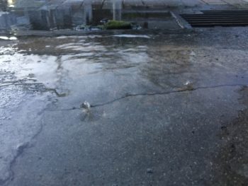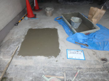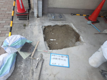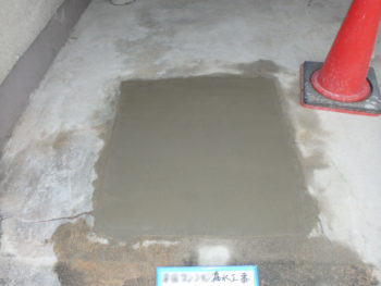 | ご提案内容 | 今年5/14日曜日に発生した緊急対応の事例です。 マンション1階ガレージの土間に埋設されている給水管が破損して土間コンクリートの割れ目より水がふきだしています。その施工事例です。このような困ったを即時対応しております。 |